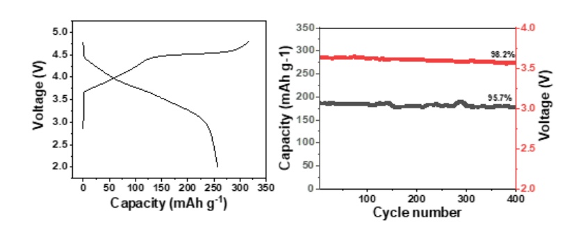 相對于傳統的電池而言,鈷酸鋰電池的能量密度更大,在同等容量情況下可以更加輕薄,并且可以在高壓環境下充放電,放電高效安全,穩定性強。制備的高電壓(4.6V)LCO表現出良好的結晶性和高的壓實密度,具有比容量高,倍率性能好,容量衰減小的特點。以3~4.6V為電壓窗口,材料在0.2C下放電比容量為226mAh/g,1C下放電比容量為210mAh/g,5C下放電比容量>160mAh/g。材料循環900圈,容量保持率為85.6%,該性能處于先進水平。