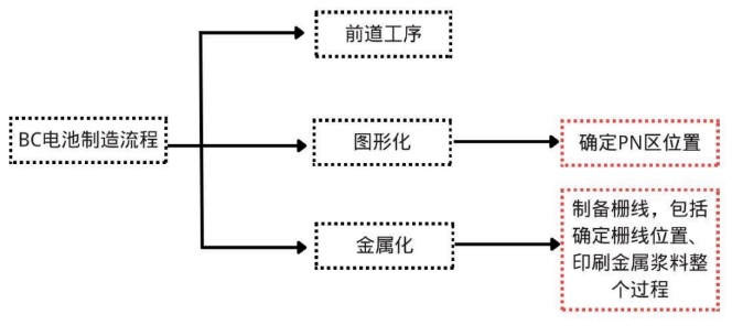 與TOPCon和HJT這兩種技術不同,BC電池將所有的金屬接觸和PN結都設置在電池的背面,從而消除了正面的金屬電極結構,實現了更高的光電轉換效率和更美觀的外觀。