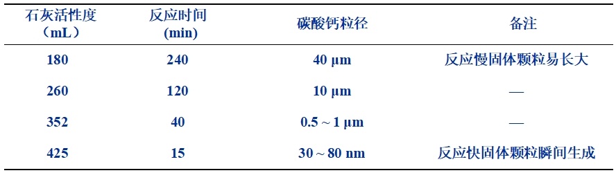 石灰活性度對碳化反應時間及產品粒徑的影響