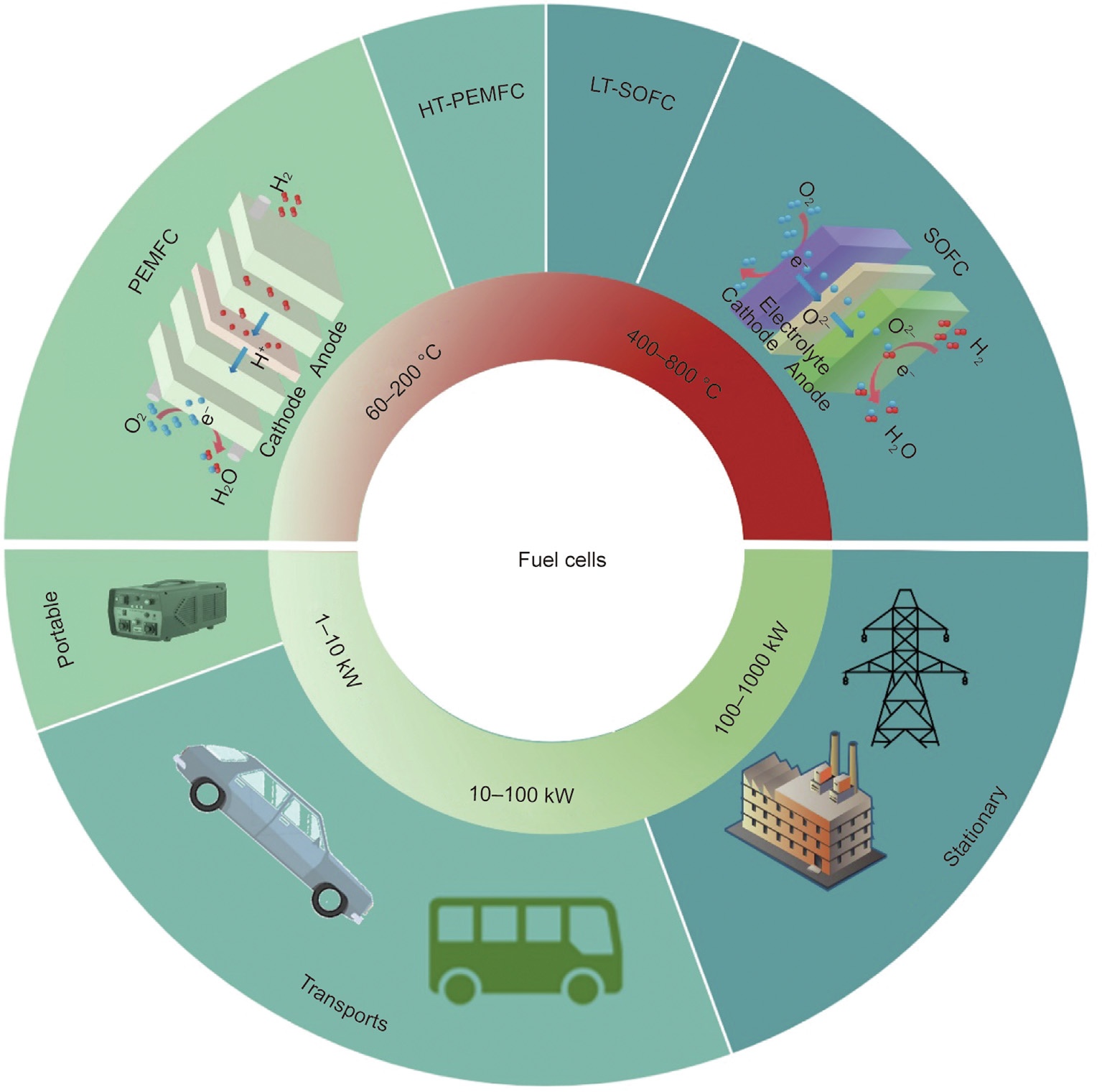 中國粉體網訊 SOFC可以使用氫作為燃料,并且不需要高純度的燃料。特別地,它們可以直接使用各種含碳燃料(例如,天然氣、生物質氣、汽油、柴油、乙醇等)與現有能源供應系統兼容。SOFC也被稱為陶瓷燃料電池,具有全固態陶瓷結構,壽命高達100 000 h。它們的模塊化設計易于安裝,在不同額定功率下具有高電氣效率,并輕松提高電網運行的靈活性和安全性。固體氧化物燃料電池的缺點包括其高溫操作-這影響了材料的選擇范圍和由于材料降解而導致的壽命損失-以及其緩慢的啟動速度。SOFC最常見的應用領域是固定發電,包括小型家用熱電聯產(CHP)、數據中心備用電站和工業固定電站。在這些應用中,大規模分布式發電和近零CO2排放的集成氣化燃料電池(IGFC)系統將成為未來的主要研究方向。