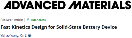 Wang, Yichao, and Xin Li. Fast Kinetics Design for Solid State Battery Device. Advanced Materials (2024): 2309306.