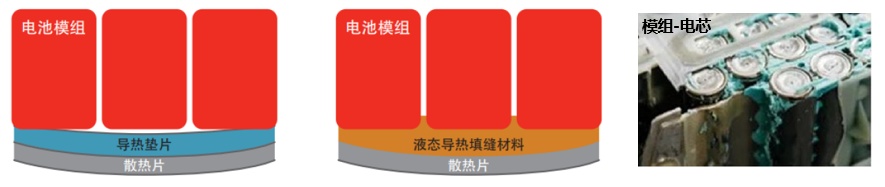 墊片與導(dǎo)熱膠的使用示意圖及導(dǎo)熱膠在模組-電芯中的應(yīng)用