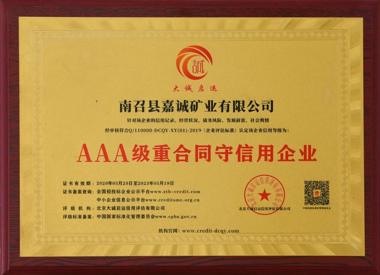 在科技創(chuàng)新方面,我們始終以科技創(chuàng)新產(chǎn)品,以產(chǎn)品引領(lǐng)市場,使我們的產(chǎn)品始終走在市場前沿。幾年來,公司共獲得發(fā)明專利兩項(xiàng),實(shí)用性專利19項(xiàng),目前,我們與河南大學(xué)共同開發(fā)的“活性超細(xì)碳酸鈣的開發(fā)及應(yīng)用”進(jìn)入中試階段,我們先后獲得了“國家高新技術(shù)企業(yè)”、“省級企業(yè)技術(shù)中心”、“河南省專精特新”企業(yè)、“省工程技術(shù)研發(fā)中心”等榮譽(yù)。2020年,我們嘉誠公司被上級有關(guān)部門授予了“AAA重合同守信用企業(yè)”、“AAA級重質(zhì)量守信用企業(yè)”、“AAA級信用企業(yè)”、“AAA招投標(biāo)信用企業(yè)”、“AAA重服務(wù)守信用企業(yè)”等榮譽(yù)。
