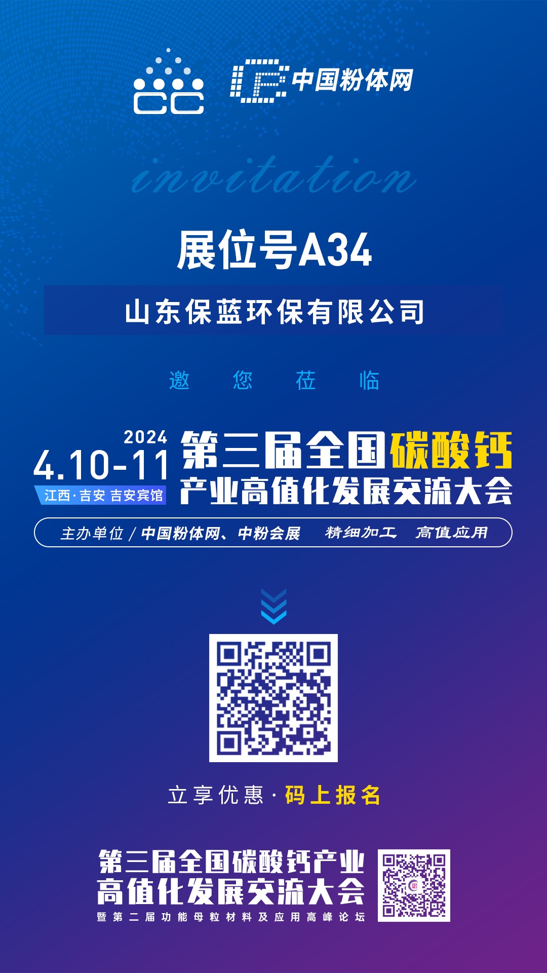 由中國粉體網(wǎng)主辦的“2024第三屆全國碳酸鈣交流會”將于2024年4月10-11號在江西吉安舉辦,山東保藍環(huán)保邀您一同參加。