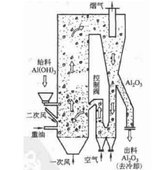 2、由于大量的固體物料在不斷地循環(huán),攜帶著大量的蓄熱,因而焙燒溫度均勻,即使在供料或干供油出現(xiàn)短暫波動的情況,也能保持反應(yīng)器和旋風(fēng)筒中的溫度均勻穩(wěn)定。物料循環(huán)的同時增加了在焙燒爐內(nèi)的停留時間,從而可以降低氫氧化鋁的焙燒溫度。通常爐溫控制在950℃左右。