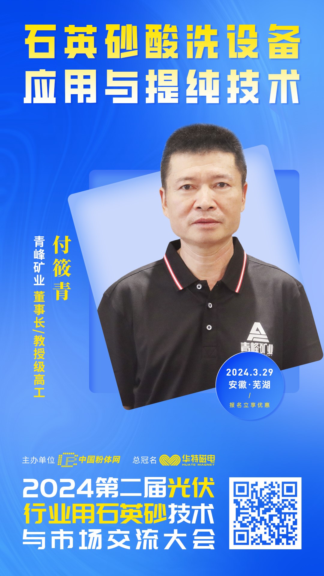 2024年3月29日,中國粉體網將于安徽·蕪湖悅園方酒店舉辦“第二屆光伏行業用石英砂技術與市場交流大會”。來自青峰礦業的付筱青董事長/教授級高工將作《石英砂酸洗設備應用與提純技術》報告。