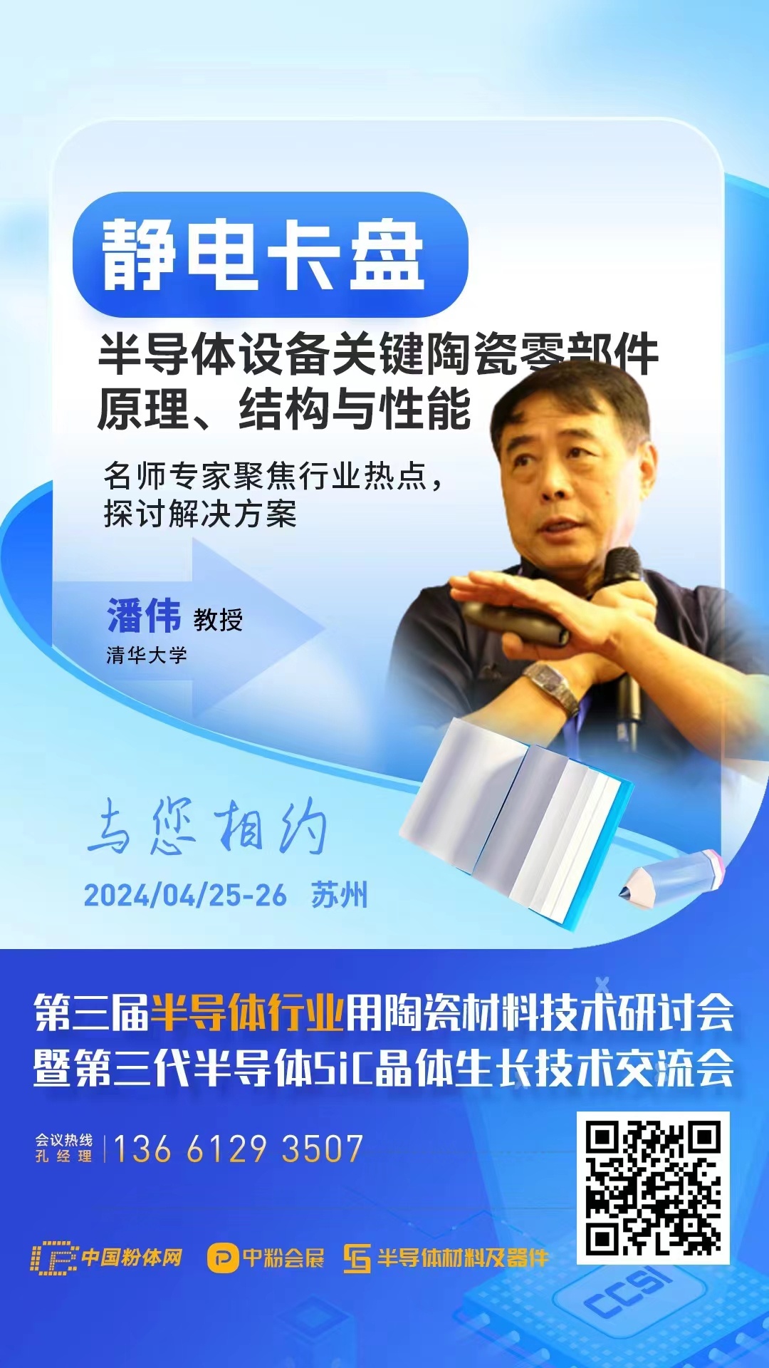 靜電卡盤是一個需要投入大量人力物力去研發和攻克的半導體核心零部件,非一日之功。2024年4月25日,中國粉體網將在江蘇蘇州舉辦“第三屆半導體行業用陶瓷材料技術研討會暨第三代半導體SiC晶體生長技術交流會”,屆時,清華大學潘偉教授將帶來題為《靜電卡盤—半導體設備關鍵陶瓷零部件原理、結構與性能》的報告,講述半導體設備關鍵陶瓷零部件靜電卡盤的發展之路。
