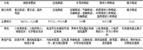 表1 電子陶瓷的類別、特性及主要產(chǎn)品