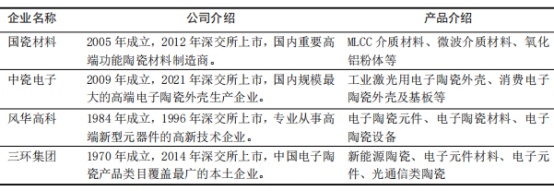 表3 國內(nèi)部分電子陶瓷企業(yè)及產(chǎn)品