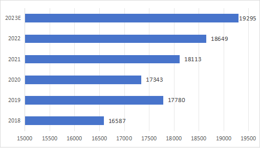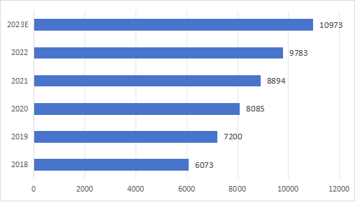 圖10 2018-2023年中國電子消費市場規(guī)模(單位:億元)