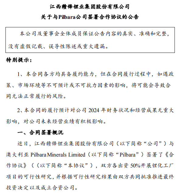 參考來源:贛鋒鋰業《關于與Pilbara公司簽署合作協議的公告》、和訊網、上海證券報等