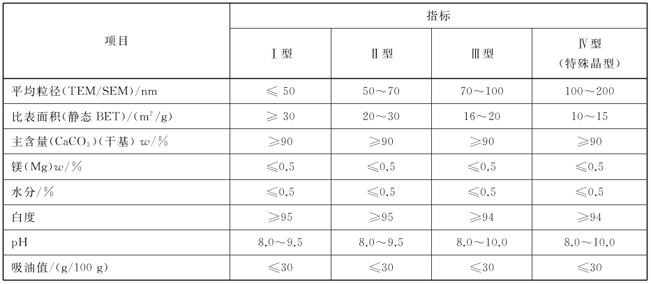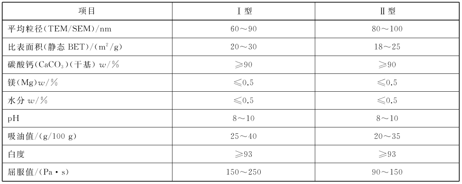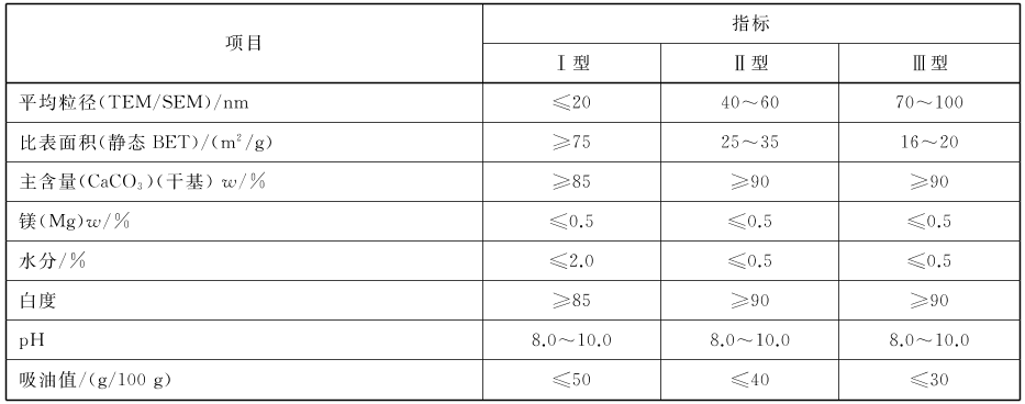 橡膠用納米碳酸鈣推薦指標