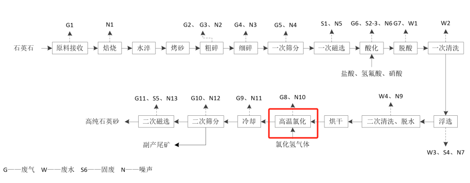 高純石英砂生產工藝及產污及流程圖