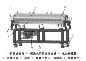 將經過前期處理烘干后的石英砂送至高溫氯化爐進行氯化,高溫氯化爐內部為石英管,長度約為6.5m,石英砂在石英管中從前端進入,從后端輸出后高溫氯化工藝即完成。