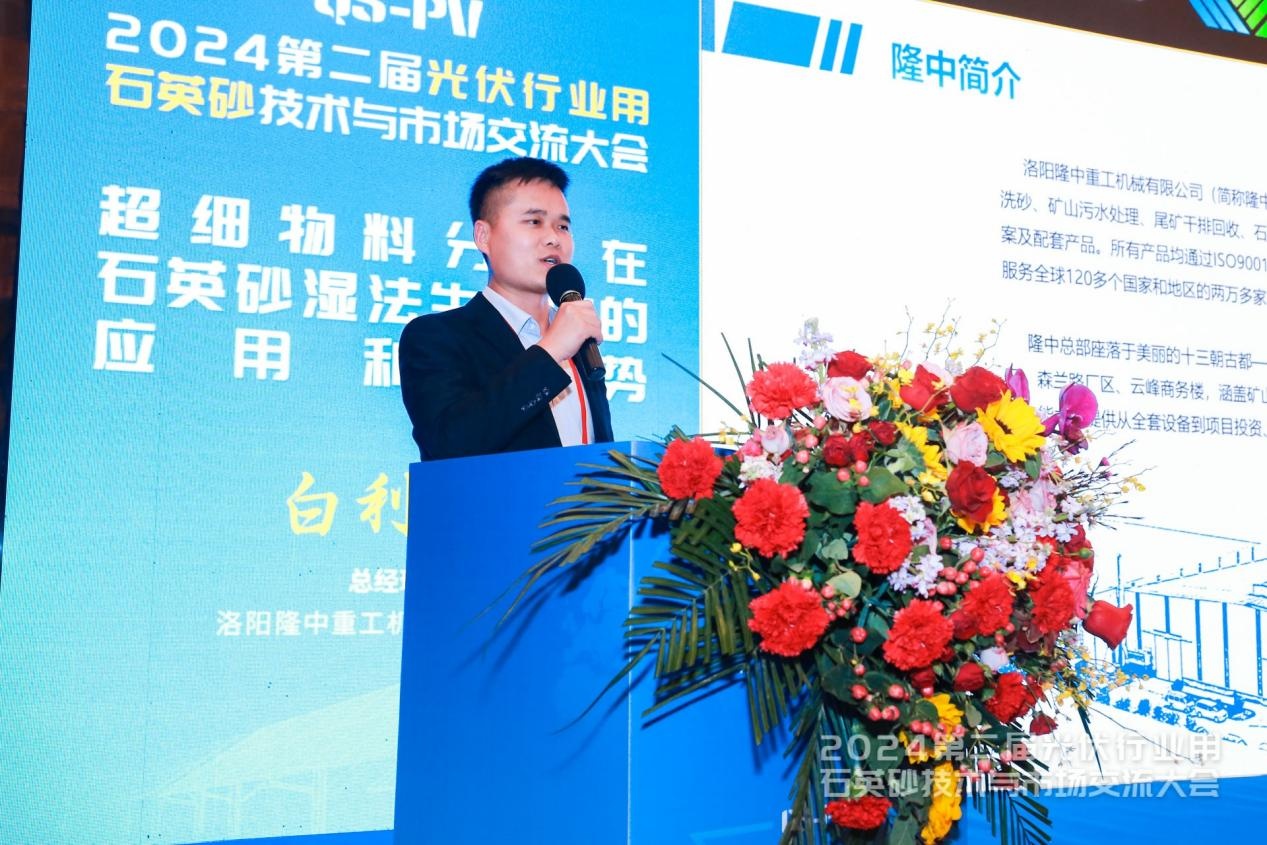 洛陽隆中重工機械有限公司白利明總經(jīng)理作《超細(xì)物料分級在石英砂濕法生產(chǎn)中的應(yīng)用和優(yōu)勢》報告