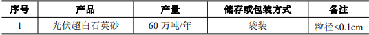 擬建項目以石英礦、草酸、石灰、聚丙烯酰胺、聚合氯化鋁等為原料,通過濕法球磨、篩分、螺旋洗礦、磁選、半成品檢測、酸洗、清洗、脫水、成品貯存等工序生產光伏玻璃砂。擬建項目建成后將形成日處理200噸,年產 60 萬噸光伏超白石英砂,新增就業崗位50個的規模。