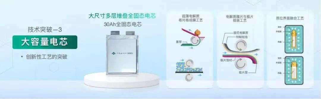 據(jù)悉,此次發(fā)布的全固態(tài)電池采用了第三代海綿硅負(fù)極片技術(shù)(新型納米硅復(fù)合負(fù)極)和高面容量固態(tài)正極技術(shù),采用100%固態(tài)電解質(zhì),具備超高能量密度、超強(qiáng)本征安全(主要指單體安全)、超寬使用溫域(-40-100℃)等特點(diǎn),并已經(jīng)“從實(shí)驗(yàn)室走向量產(chǎn)應(yīng)用”。