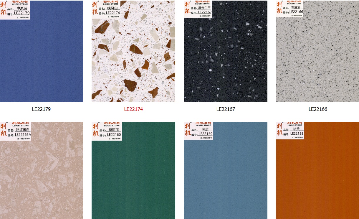 “LE 品牌”天然合成石制品 96% 的原料是取源于天然碎石料,通過(guò)添加石英石(粉)等輔助材料,用混合聚酷樹(shù)脂或優(yōu)質(zhì)水泥,在真空狀態(tài)條件下,經(jīng)一定的加工程序高壓擠壓凝聚而成的人工合成產(chǎn)品。在制造過(guò)程中配以不同的色料可制成具有色彩艷麗、光澤如玉酷似天然大理石制品。其花色獨(dú)特,輕質(zhì)簿型,堅(jiān)固耐磨,具備天然石料的基本特性,可按天然石的花色、紋路生產(chǎn),甚至更勝一籌。在現(xiàn)有的技術(shù)中還可添加貝殼,玻璃,陶瓷粒等原材料,制造出更加色彩繽紛的花色品種。因其具有環(huán)保.符合(GB6566A)類(lèi)放射性裝修材料的規(guī)定、阻燃性、吸水率低、耐磨、耐沖擊、易保養(yǎng)、任意造型等優(yōu)點(diǎn),正逐步成為裝修建材市場(chǎng)上的新寵產(chǎn)品,被廣泛應(yīng)用于賓館、酒店、商廈、寫(xiě)字樓、機(jī)場(chǎng)、車(chē)站、地鐵站、體育館等大型工程之外,也是家居室裝修和工藝家私制作的理想材料之選。