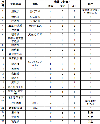 擬建項目改造前后設備使用情況一覽表