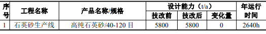 2020年7月,弘濤公司對原有“年產5800噸石英砂生產項目(石英砂原料-挑選-粉碎-篩分-成品)”進行技術升級改造,增加“浮選一清洗一烘干一二次篩分一磁選”等工藝,未涉及酸洗工藝,年產5800噸石英砂產能不變。該技改項目于2021年1月8日取得環評批復。但由于疫情原因,該技改項目一直未建設。
