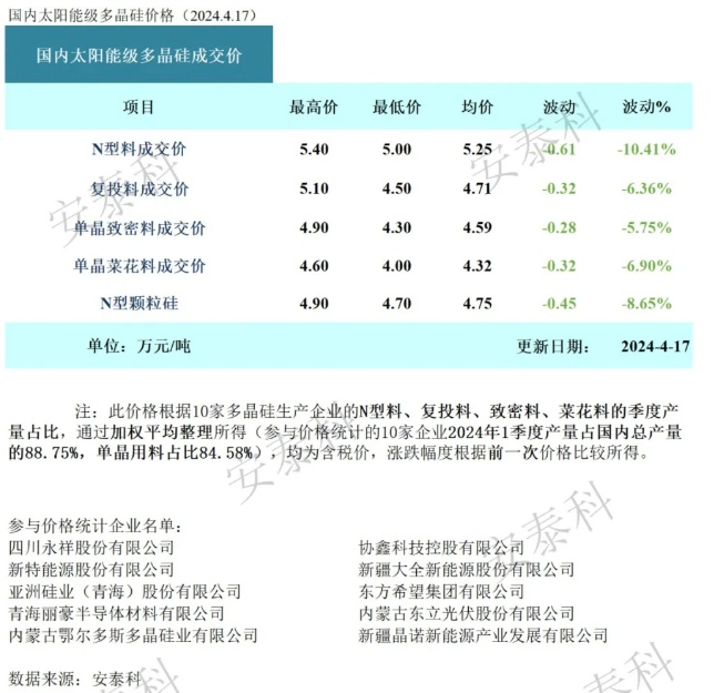 中國粉體網訊 根據硅業分會4月17日消息,本周硅料價格依舊呈持續下跌。