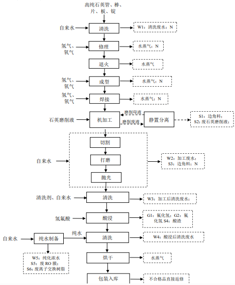 石英器件工藝流程及產(chǎn)污環(huán)節(jié)圖