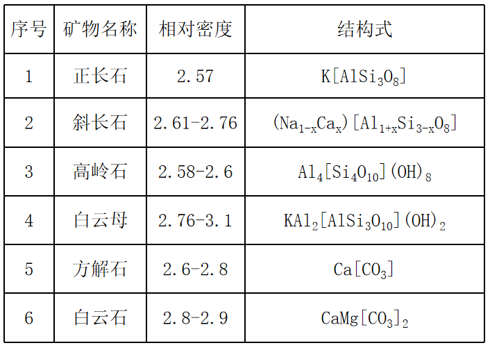 輕礦物主要包含長石、高嶺石、白云母、方解石、白云石等。石英相對密度為2.65,與輕礦物相對密度差距較小,因此此類鐵較難分離。