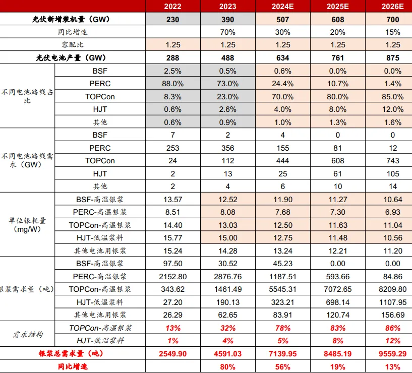 2022-2026年光伏銀漿需求結構分析;來源:CPIA