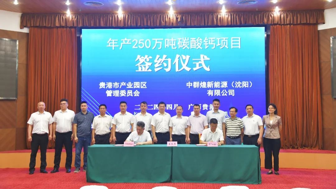 中國粉體網訊 4月25日下午,貴港高新區管委會與中群煌新能源(沈陽)有限公司在市區舉行年產250萬噸碳酸鈣項目簽約儀式。貴港高新區管委會、市發展改革委、工業和信息化局、自然資源局、生態環境局、投資促進局以及市農投集團等單位領導出席并見證簽約。