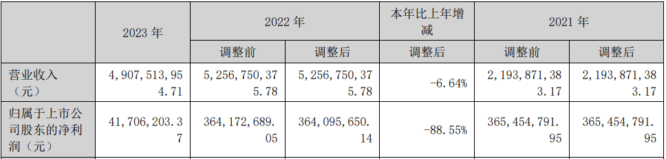 年報顯示2023年共實現營業總收入約49.08億元,同比下降6.64%,凈利潤約4170.62萬元,同比下降88.55%。