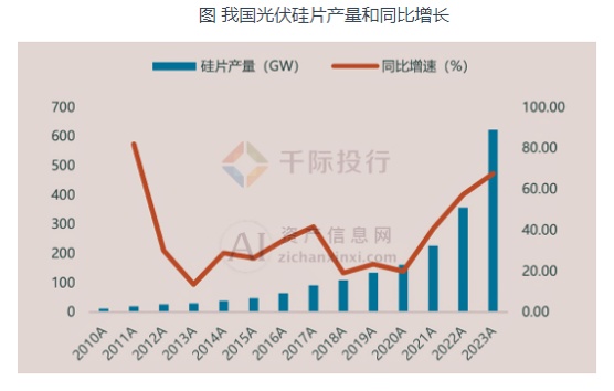 中國光伏硅片產量迅速增長,是全球最重要的光伏硅片生產國。