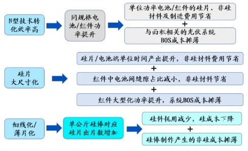 在降本和提效的雙重因素驅動下,N型技術、大尺寸和薄片化已成為硅片環節的主要發展方向。
