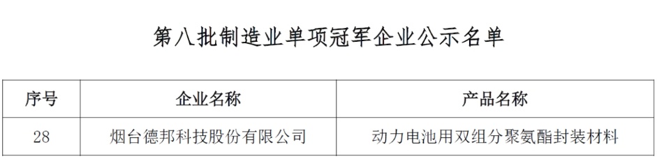 中國粉體網訊 近日,工信部公布了第八批國家級制造業單項冠軍企業名單,德邦科技榜上有名。