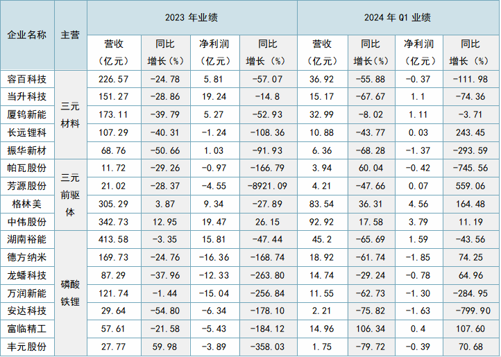 三元正極需求承壓,業(yè)績(jī)分化明顯