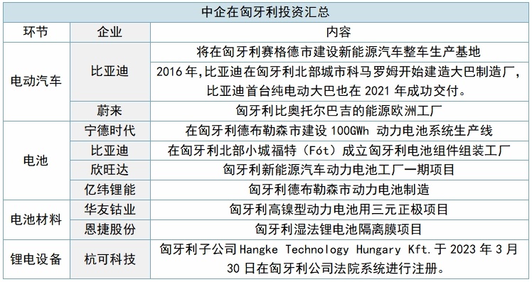梳理可得,以比亞迪、寧德時(shí)代為首的鋰電相關(guān)企業(yè)紛紛都將廠址定在了匈牙利。