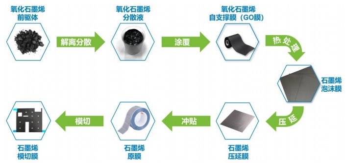 有效成本控制下的規模化制備是新材料從實驗室到市場的前提,行業內通常采用高溫熱還原氧化石墨烯膜的方式制備石墨烯導熱膜。