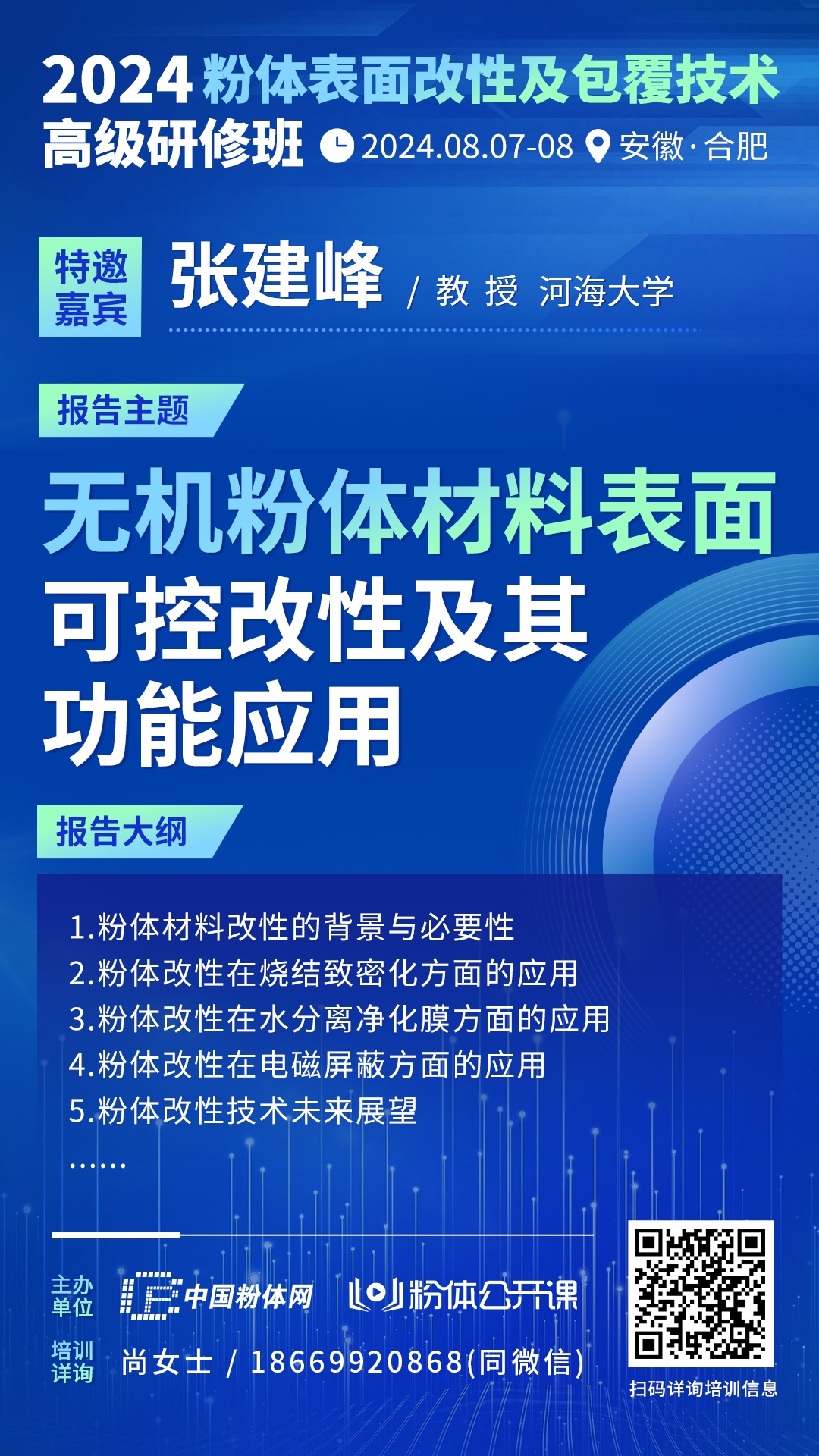 由于粉體表面的改性目的、改性工藝以及改性效果評價方法等有很大不同。特此,中國粉體網(wǎng)定于2024年8月7-8號在安徽·合肥組織召開2024第五屆粉體表面改性及包覆技術(shù)高級研修班,邀請行業(yè)專家學(xué)者一起面對面交流探討。