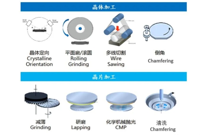 而切割片存在損傷層,需要通過磨削、研磨、拋光和清洗環節提高表面質量和精度。碳化硅襯底難加工的材料特性疊加其大尺寸化、超薄化的放大效應,給現有的加工技術帶來了巨大的挑戰,高效率、高質量的碳化硅襯底加工技術成了當下的研究熱點。