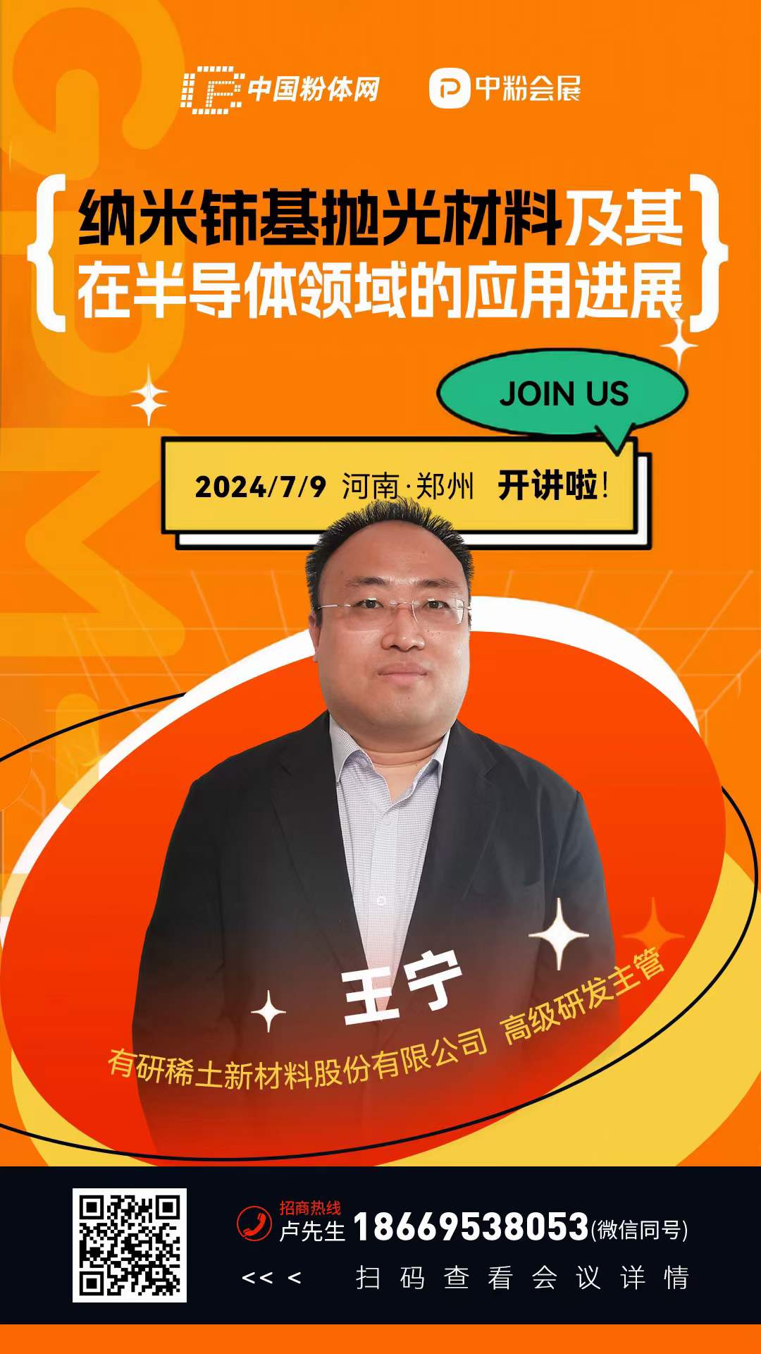 2024年7月9日,中國粉體網將在鄭州舉辦“2024高端研磨拋光材料技術大會”,屆時,有研稀土新材料股份有限公司高級研發主管王寧將帶來《納米鈰基拋光材料及其在半導體領域的應用進展》的報告,報告將介紹有研稀土在氧化鈰拋光液的相關研究,揭示了CeO2物相、結構與形貌的演變規律,制備出系列易分散的納米氧化鈰粉體和拋光液。