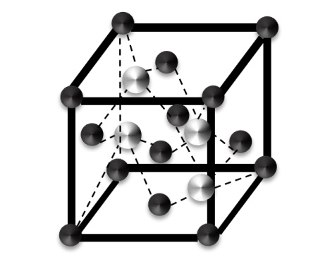 氮化硼是由B和N以SP3雜化形成的晶體,與金剛石結(jié)構(gòu)相似,為閃鋅礦結(jié)構(gòu),屬于等軸晶系,空間群為F43m;瘜W(xué)組成為43.6%的B和56.4%的N,具有四種不同的變體。纖鋅礦結(jié)構(gòu)的六方氮化硼(hBN)、菱方氮化硼(rBN)、立方氮化硼(cBN)和密集六方氮化硼(wBN),立方氮化硼結(jié)構(gòu)圖如下圖所示,每一層都是相同的原子(B或N)緊密堆積而成,原子層以ABCABC……排列,晶格常數(shù)為a=0.3615nm±0.00001nm,與金剛石的晶格常數(shù)相近,N和B原子間距為0.157nm,密度為3.48g/cm3;在cBN晶格中,B-N的鍵長(zhǎng)為0.157nm,B-N鍵的鍵角為109°5′。