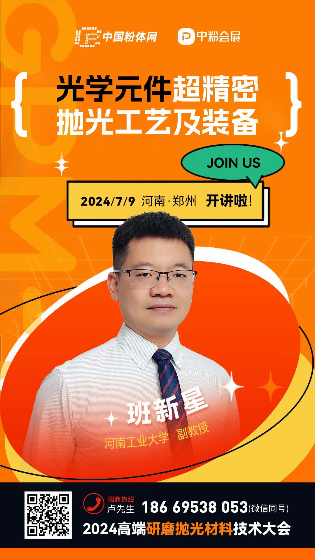 雖然國內已能夠研發制造出相對高端的精密機床,但與國際先進水平相比,我國的光學超精密加工技術與裝備還存在一定的差距。2024年7月9日,中國粉體網將在鄭州舉辦“2024高端研磨拋光材料技術大會”,屆時,河南工業大學機電工程學院副教授班新星將帶來《光學元件超精密拋光工藝及裝備》的報告,其報告將從先進光學元件的超精密制造工藝出發,結合自身的科研經歷和研究計劃,以大口徑平面光學元件超精密拋光為例,探討平面拋光機理、面形收斂機制、拋光機床設計及工藝優化控制等問題。