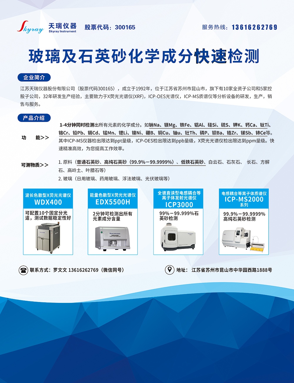 天瑞儀器將以“分析行業者”的姿態,不斷探究世界分析領域的前端。為客戶提供更加先進的產品和更加滿意的服務,同時為電子、電器、珠寶、玩具、食品、建材、冶金、地礦、塑料、石油、化工、醫藥等眾多行業提供更為完善的行業整體解決方案,從而推動中國經濟快速全球化。