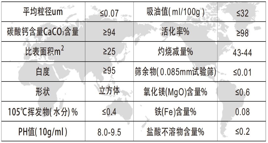 一款經過表面處理的納米級輕質碳酸鈣,立方體晶型,窄粒徑分布。適合用于,工程塑料改性、PP、PE、PA、PC、PVC等。由于活性納米碳酸鈣表面親油疏水,與樹脂相容性好,能有效提高或調節制品的剛、韌性、光潔度以及彎曲強度;改善加工性能,改善制品的流變性能、尺寸穩定性能、耐熱穩定性,具有填充及增強、增韌的作用,能取代部分價格昂貴的填充料及助劑,減少樹脂用量,從而降低產品生產成本,提高市場競爭力。