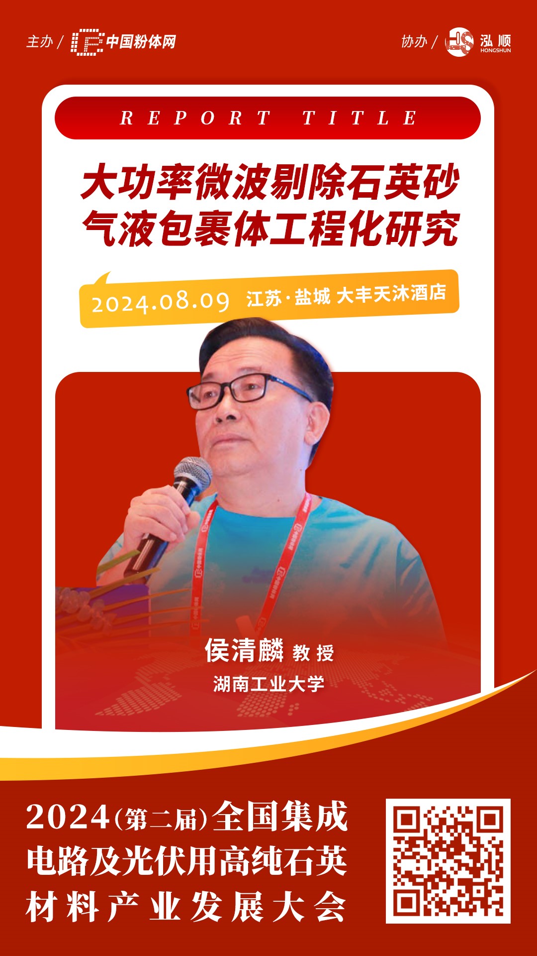 2024年8月9日,中國粉體網將在江蘇鹽城大豐天沐酒店舉辦“2024(第二屆)全國集成電路及光伏用高純石英材料產業發展大會”,屆時,來自湖南工業大學的侯清麟教授將作《大功率微波剔除石英砂氣液包裹體工程化研究》報告,詳細講述微波技術剔除石英砂氣液包裹體。