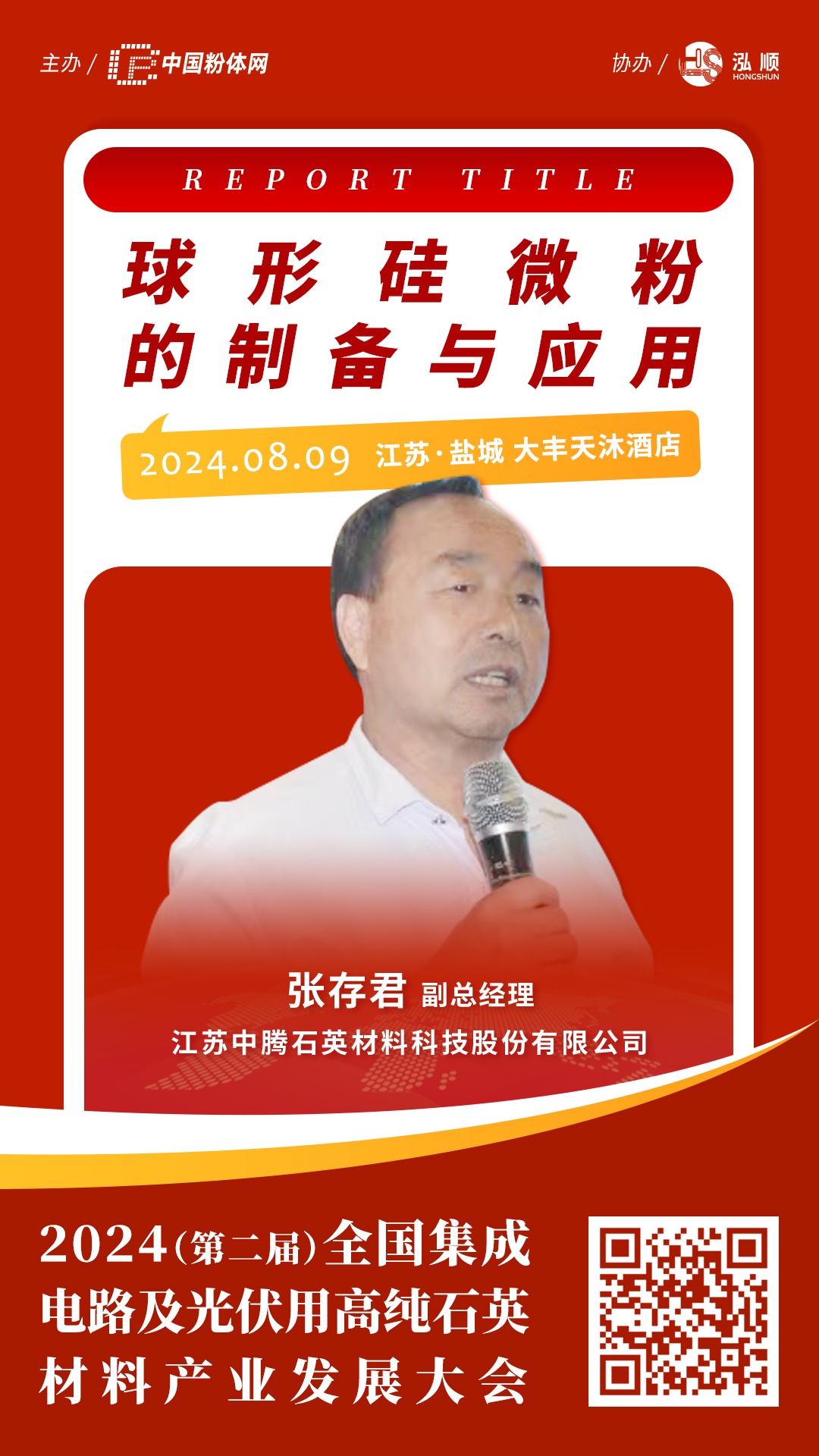 2024年8月9日,由中國粉體網主辦的“2024(第二屆)全國集成電路及光伏用高純石英材料產業發展大會”將在江蘇鹽城召開,江蘇中騰石英材料科技股份有限公司的張存君副總經理將做《球形硅微粉的制備與應用》的報告,屆時,他將結合公司實際研發經驗,詳細解讀球形硅微粉的生產技術及應用領域。