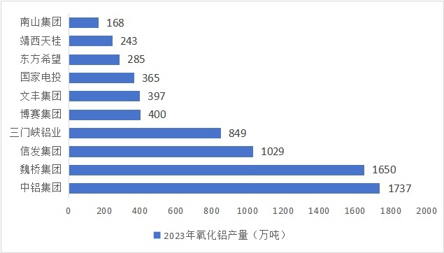 近年來,隨著國民經濟的發展,我國已成為全球最大氧化鋁生產和消費國。據國際鋁業協會數據顯示,2023年全球氧化鋁產量累計達到1.419億噸,前一年同期為1.422億噸。2023年中國氧化鋁產量累計達到8238萬噸,同比增長3.28%,占全球產量的58%。以下為國內10家主要氧化鋁生產企業。