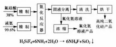 先制得無定型二氧化硅、副產氟化銨,再高溫加熱至熔融狀態,分階段冷卻,得到沙粒狀的晶體石英砂。二氧化硅純度達6N,可用于制造拉制單晶硅或多晶硅的石英坩堝。