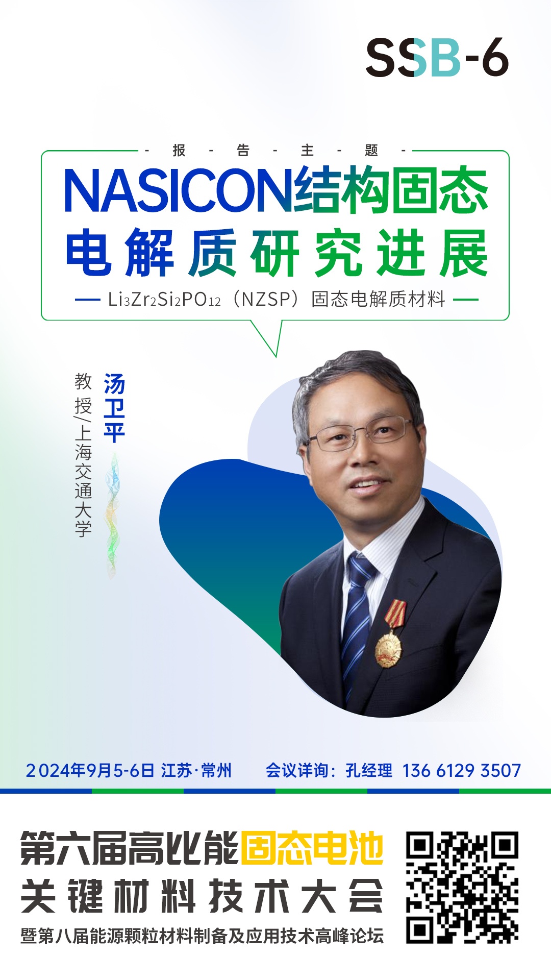 針對固態電池相關的技術、材料、市場及產業等方面的問題,中國粉體網將于2024年9月5-6日在常州舉辦第六屆高比能固態電池關鍵材料技術大會。為致力于固態電池技術開發的企業,科研院校,以及電動車、儲能、特種應用等終端企業提供信息交流的平臺,開展產、學、研合作,共同推動行業發展。屆時,上海交通大學湯衛平教授將作題為《NASICON結構固態電解質研究進展》的報告,報告將對湯衛平教授課題組所制備的Li3Zr2Si2PO12(NZSP)固態電解質材料的性能及研究進展展開詳細介紹。