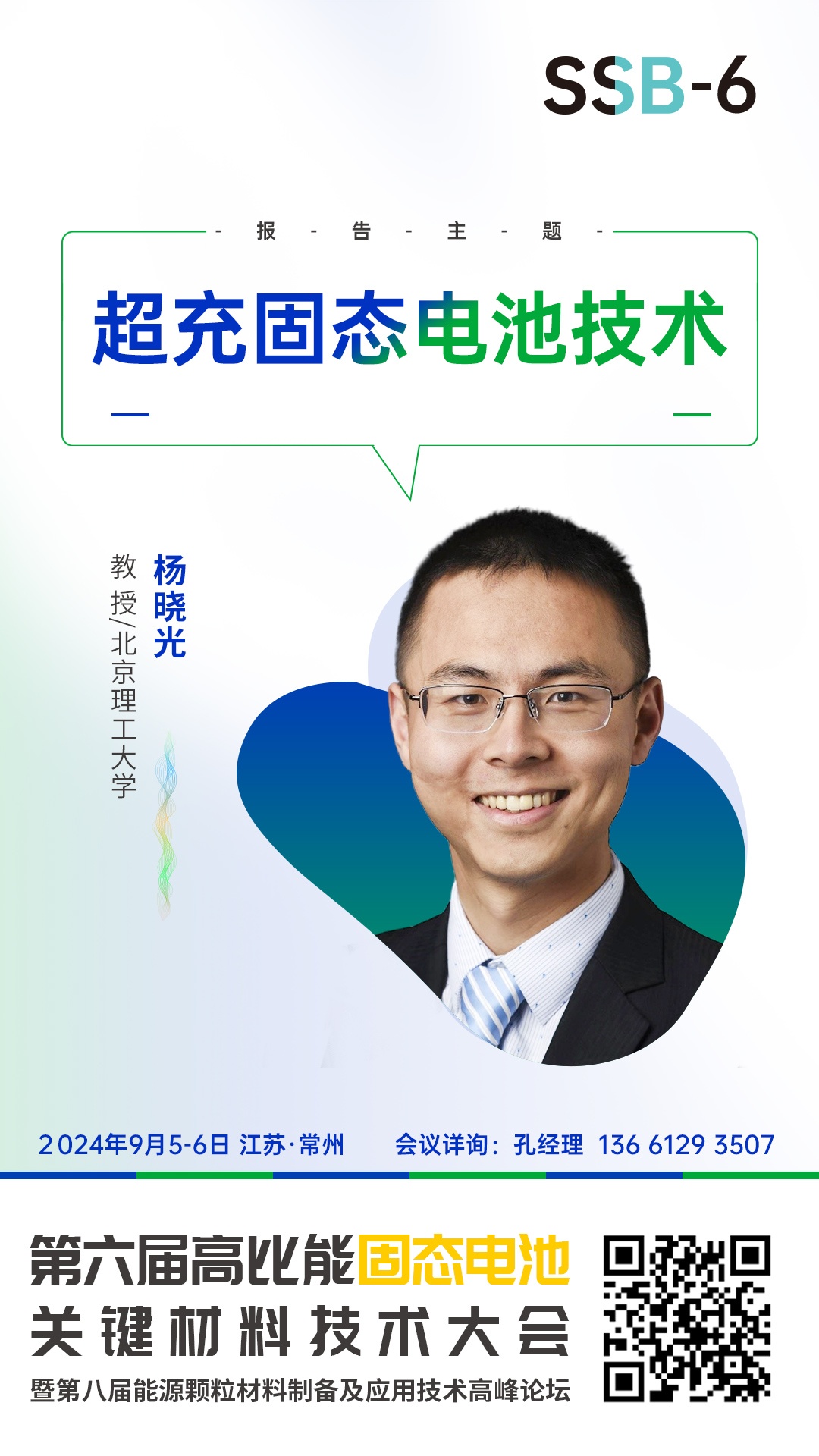 針對固態電池相關的技術、材料、市場及產業等方面的問題,中國粉體網將于2024年9月5-6日在常州舉辦第六屆高比能固態電池關鍵材料技術大會。為致力于固態電池技術開發的企業,科研院校,以及電動車、儲能、特種應用等終端企業提供信息交流的平臺,開展產、學、研合作,共同推動行業發展。屆時,北京理工大學楊曉光教授將作題為《超充固態電池技術》的報告,報告將從關鍵材料、器件、電芯多維度出發,介紹團隊在超充固態電池方面的研究進展。