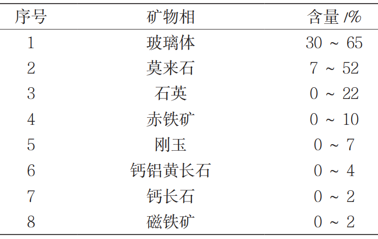 按照是否為晶相進行分類,礦物成分可分為晶相物質與非晶相物質。粉煤灰中的非晶相物質主要包含玻璃體以及燃燒后殘留的碳,這其中玻璃體使得粉煤灰具有活性;晶相物質主要包含石英、莫來石、石灰,還有少量的赤鐵礦、磁鐵礦、鈣長石等。此外,粉煤灰的礦物組成受煤源、燃燒條件等因素影響而發生變化。